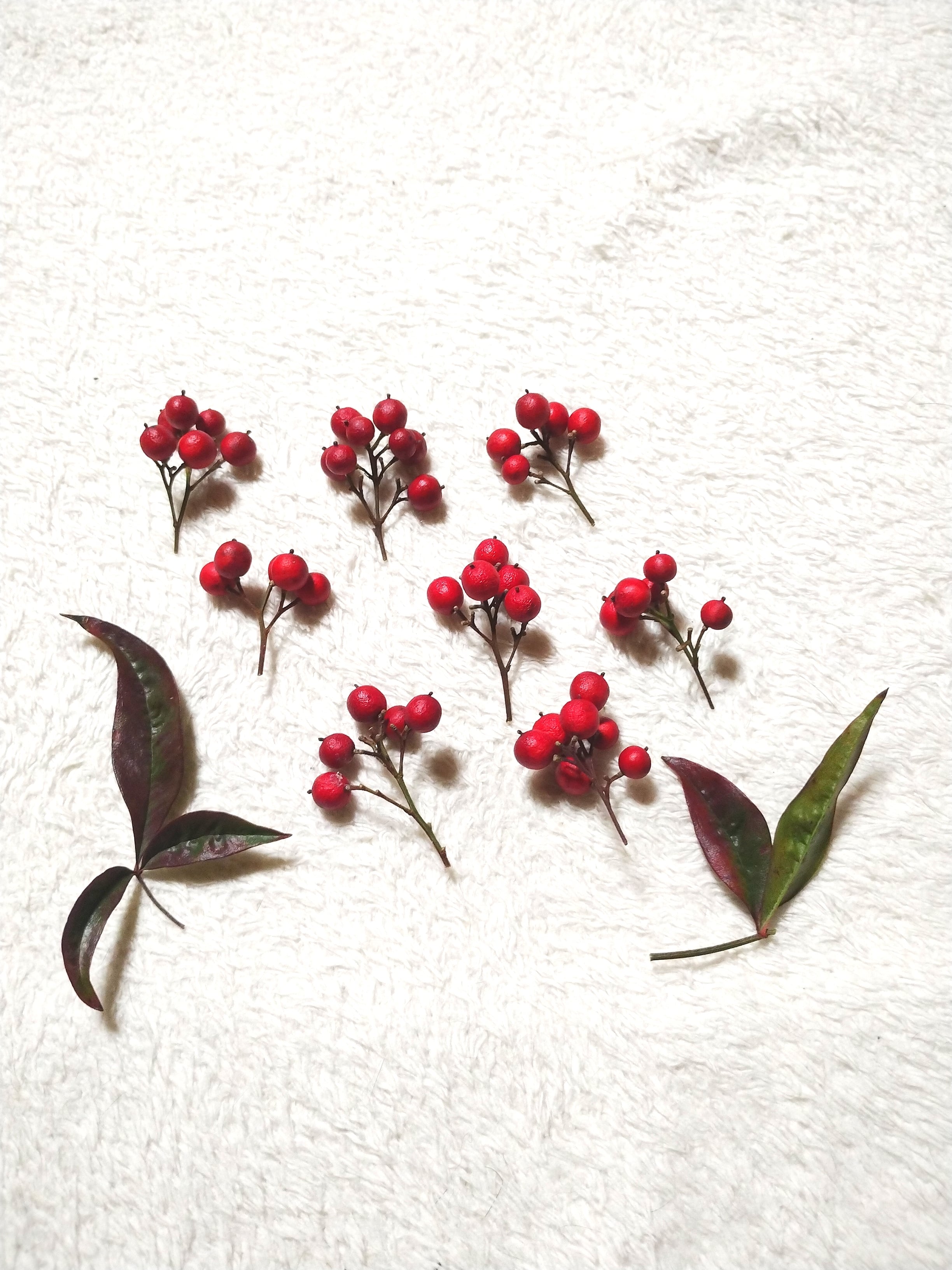 【ドライ素材・撮影小物・クラフト向け】南天の枝物 5粒×8枝/葉付き【計40粒相当/自然乾燥/農薬不使用】