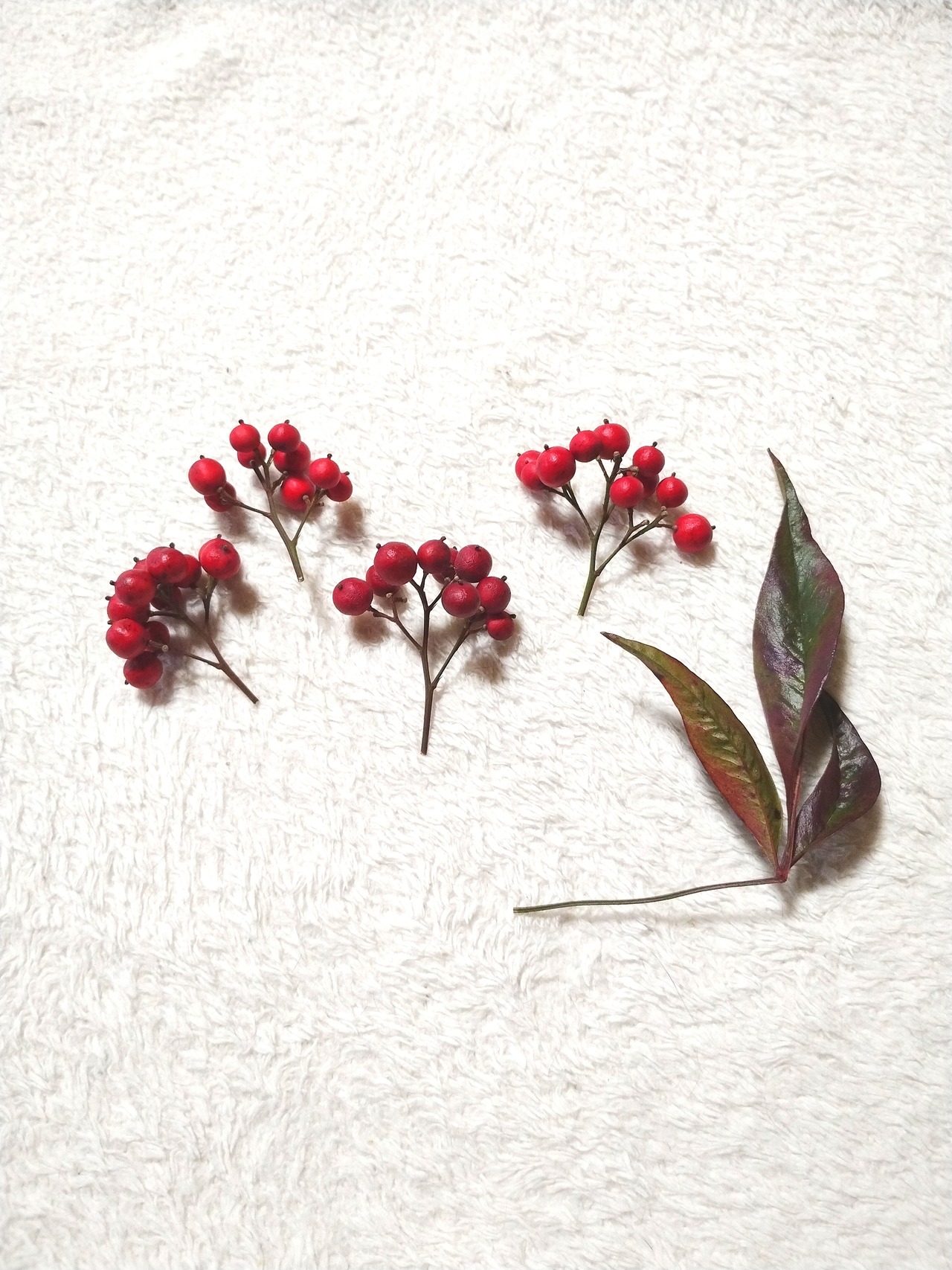 【クラフト向け】南天の実(10粒×4枝/計40粒相当)葉付き【自然乾燥・農薬不使用】